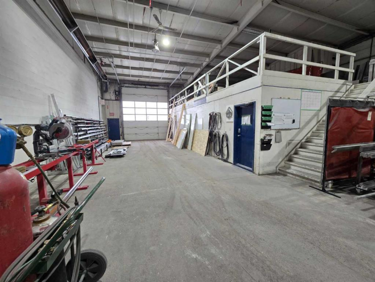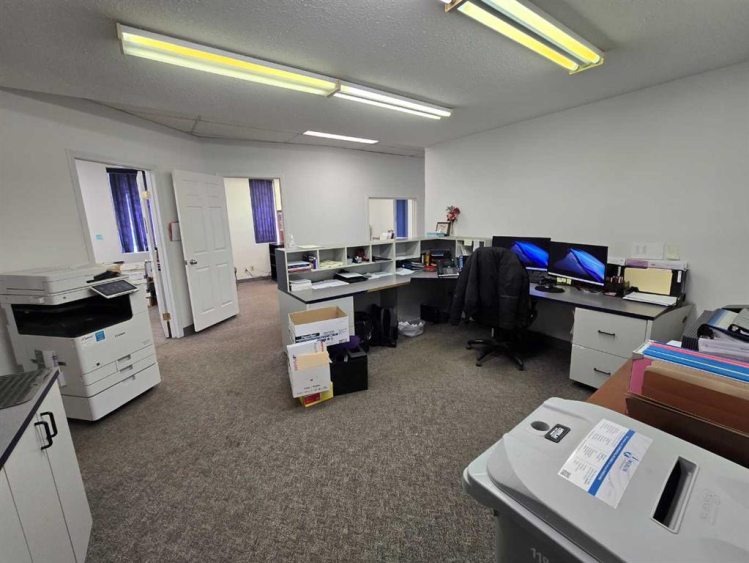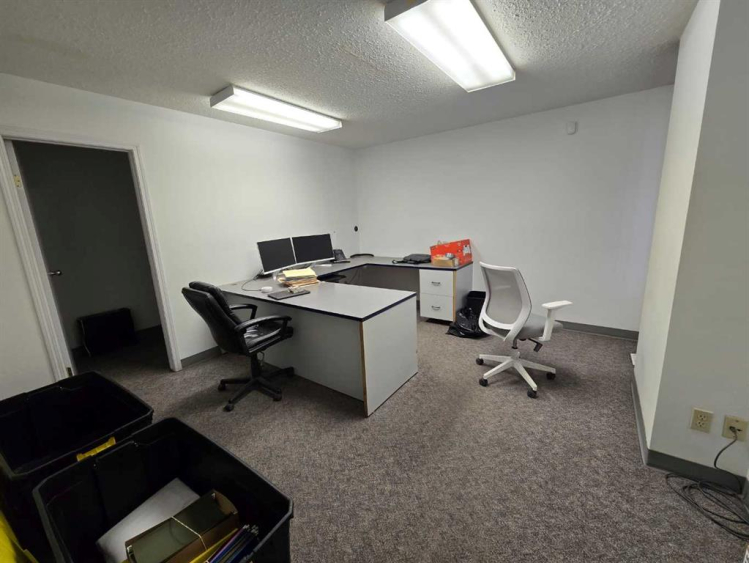 Located in Chiles Industrial Park, this 5,848 SF unit is available for lease. The unit features a reception area, three front offices, two washrooms, a boardroom, a staff lunchroom with a sink, and additional closet and storage space. The shop is wide-open with a storage
