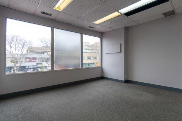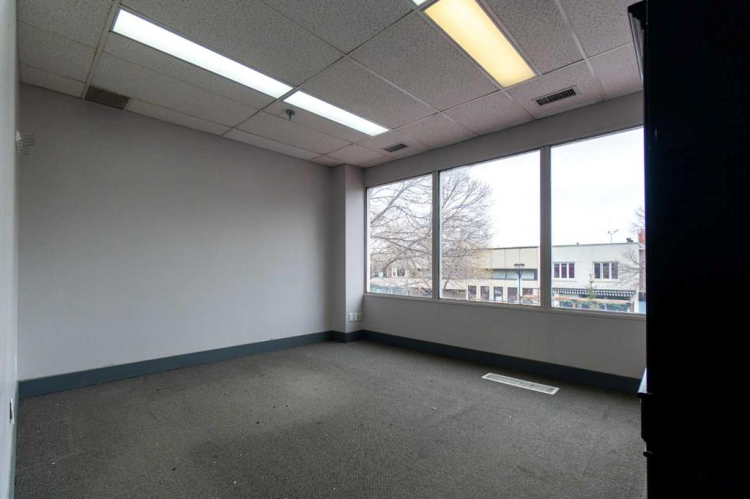 This space is 960 sq ft and has one large open area with 3 offices; 2 of the offices look out onto 50th Avenue. Building offers common washrooms. Monthly rents are all inclusive with no other expenses and there are no long term commitment required. Just starting out? There may be financial help from the City. There are other spaces available in the building of varying sizes.