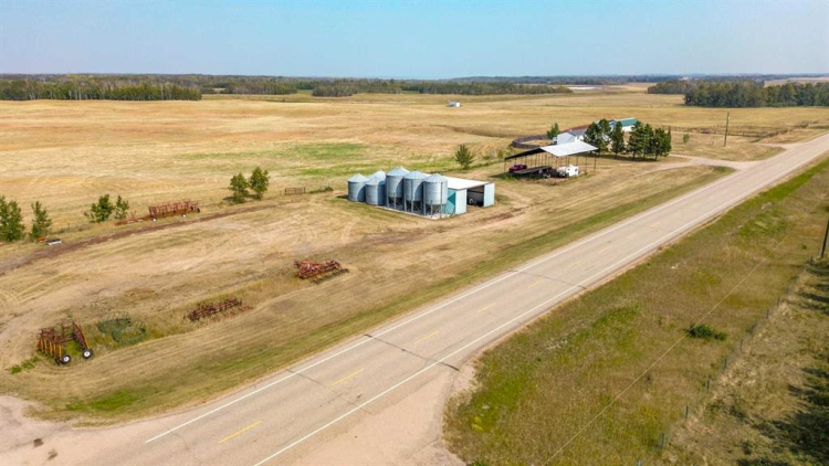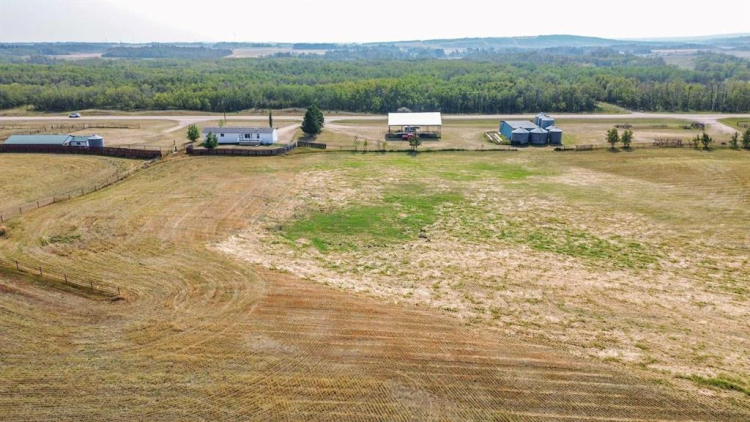 Located right on Highway 601, this well-cared-for farm consisting of 84.39 acres, combines a bright, 2013 home with a fully functional farmyard—ideal to add to your farming operation, great for hobby farmers, or anyone wanting extra space and flexibility. Wide open views of farmland and trees surround the property, offering peace and prairie charm from every angle. The home is in excellent condition, immaculately maintained, and filled with natural light. It features vaulted ceilings, large windows, wood-look flooring, and light-colored walls throughout. The spacious kitchen boasts plenty of cabinets, stainless steel appliances, and a tiered island, all open to the dining area and huge living room. The primary suite includes a walk-in closet and 3-piece ensuite with walk-in shower. Three additional bedrooms and a full 4-piece bathroom provide plenty of space for family or guests. The back entry offers convenient laundry hookups and storage. Outdoors, the yard is low-maintenance with lots of parking and plenty of grass. There are two large decks at the front and back entrances creating a variety of locations to unwind and enjoy the scenery. The backyard has expansive views of the farmland beyond. The farmyard on either side of the house offers excellent functionality and includes a 60’ x 38’ barn, 60’ x 42’ open bale shed, storage shed with metal siding, 3 stock waterers, and steel corrals, making it ideal for small livestock, equipment storage, or hobby farming ventures. The farmland is currently seeded down to hay. This property is conveniently located between Stettler and Alix, and is a short commute to Red Deer. This is a great property which blends modern living with practical farmyard infrastructure—an excellent opportunity for those seeking both comfort and versatility.