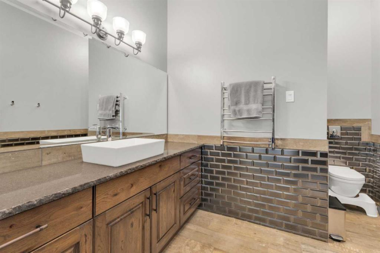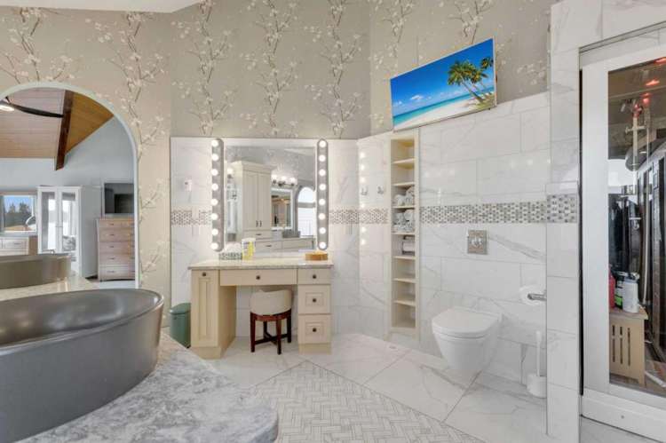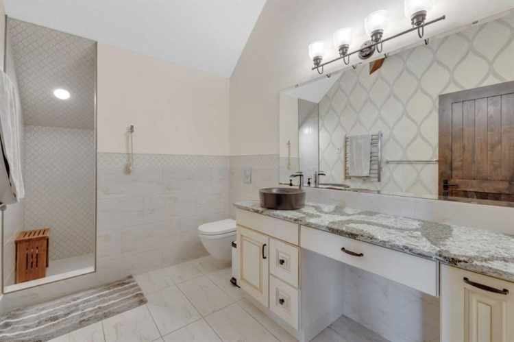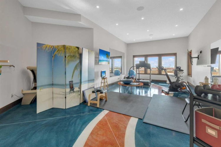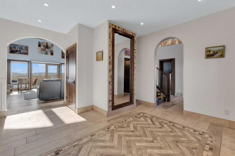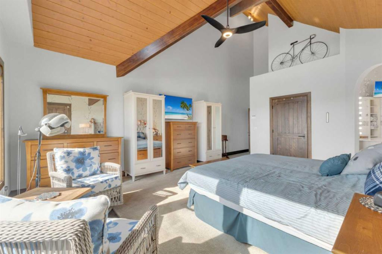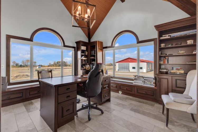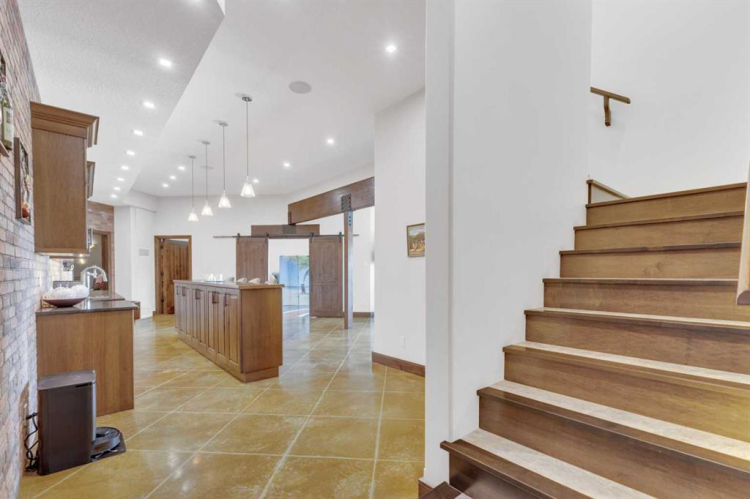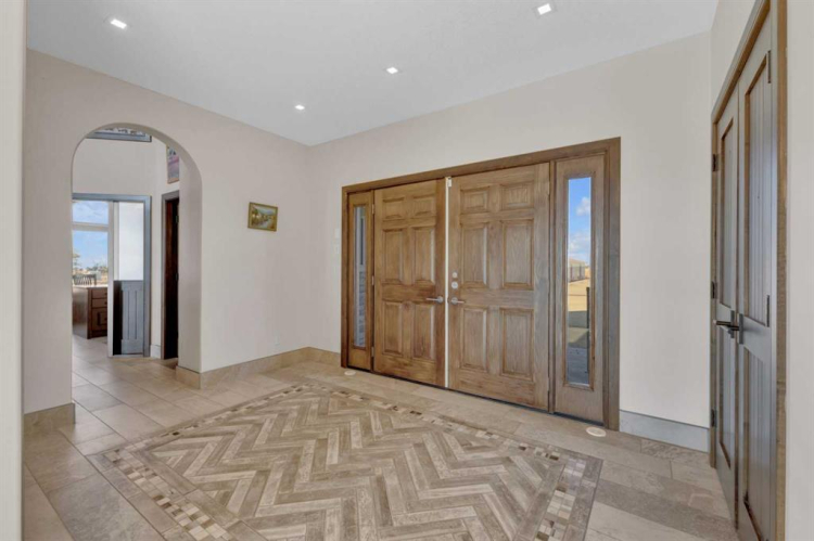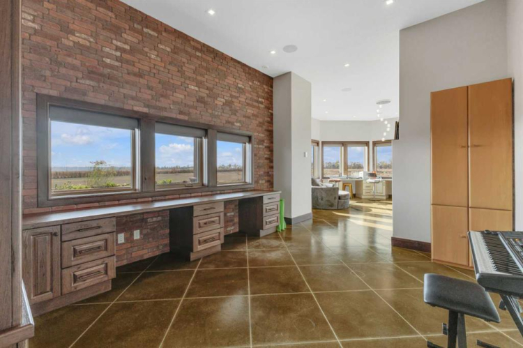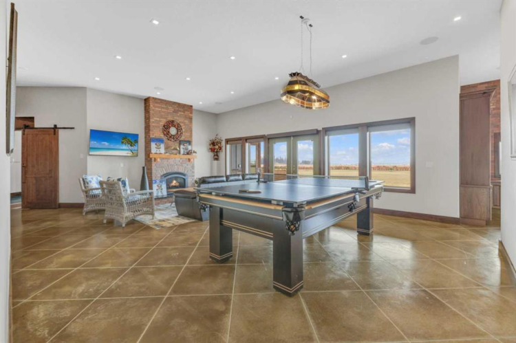 This estate presents the rare combination every buyer hopes to find: an architecturally stunning home, a fully equipped commercial grade shop, and nearly 100 acres of productive farmland, all crafted to exceptional standards. Construction began in 2014, with the home progressing through a meticulous multi year build and receiving full compliance and occupancy approval in 2017. Offering over 6,850 sq ft of refined living space (3,687 sq ft above grade + 3,163 sq ft below), this custom Linwood Homes estate provides privacy, accessibility, and rural serenity just minutes from Red Deer, Lacombe, Sylvan Lake, and the QE2. Inside, rich cherrywood cabinetry, beams, intricate tilework, and 27 foot vaulted ceilings define the warm, luxurious atmosphere. The gourmet kitchen offers quartz counters, built in Miele appliances, LED lighting, and a large walk in pantry. Triple pane windows frame expansive views, while the living room’s stone surrounded woodstove and the family room’s gas fireplace create inviting gathering spaces. The primary suite features a spa inspired ensuite with steam shower, infrared sauna, dual sinks, and a large walk in closet. Additional bedrooms, a den, and a walkout basement with theater room and gym enhanced by fully insulated interior walls offer exceptional versatility. The lower level showcases polished concrete floors and a custom bar with cooled wine storage and beer tap, flowing to a lounge with gas fireplace and a covered patio. Two offices, a luxury laundry room, and a second garage entry laundry add convenience. The newly resurfaced main deck (2025; $23,500) and infinity swim spa maximize outdoor enjoyment. Comfort is ensured with three A/C units, two boilers, forced air, in floor heat, RO water system, spray foam insulation, and full weeping tile. Exterior features include cedar soffits and beams, board and batten siding, and Lindab steel eavestroughs. A 19 kW solar array (47 panels) significantly offsets utility costs. The heated 45’×29′ attached garage provides ample space. The 250’×60′ industrial grade shop offers 18 ft ceilings, reinforced concrete, a 72 ft heated section with in floor heat, 2 post lift, five 16’×24′ doors, an 18’×40′ hangar door, full kitchen/staff room, sump, LED lighting, filtration, R60 insulation, and buried air and water lines. Set on 98.28± acres with 86± acres of #2 cropland, the property also includes a 1.42 acre surface lease ($3,900/yr), six 5,000 bushel grain bins, four hydrants, separate septic systems for the house and shop, and a second serviced homesite, an exceptional blend of beauty, function, and long term legacy.
