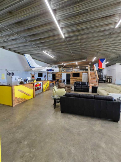 Amazing setup. Front offices and modern upgraded one bedroom suite. Over 16,000 sqft of shop/warehouse/clubhouse style open area with several barn door accessed rooms. Approximately 4700 sqft cold storage airplane hangar int the rear. Overhead doors, large kitchen/wet bar at the front of the open area. There is a partial airplane hanging over the bar with working lights. This place has to bee seen to appreciate it’s vibe. Would suit storage, private club, or bring your idea. The airport itself has been upgrading the runway with new blacktop after about 40 years of use. Recent upgrades to the building include the suite add-on (permitted), granite counter tops, tile, hardwood floors, appliances and interior heating. 2 bathroom upgrades, staff room, cupboards, flooring etc. Main heated hangar area had the drywall cleaned up and new hot water tank. All upgrades were done 7 years ago. 22 years remaining on County of Red Deer 25 year land lease. Property is also listed for lease MLS A2253820