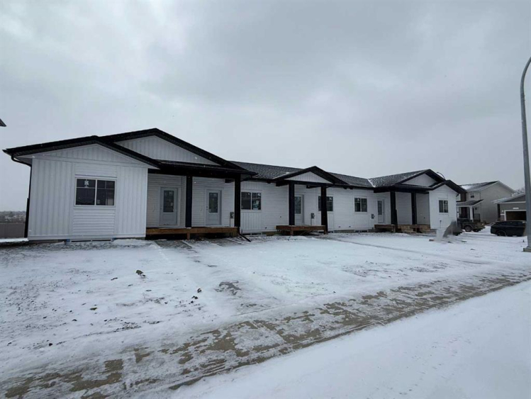 Attention investors this brand new bungalow 5 plex in Sylvan Lake offers a rare opportunity to please a different style of renter. Located in the peaceful new Grayhawk subdivision on Sylvan Lake’s west side, you’ll love being close to walking paths, future schools & shops, with quick access to the lake, golf courses, and amenities — all while enjoying a quiet community setting. The 2 end units are 1099 sq ft on main floor with 2 bedrooms, a 4pce bath with cheater doors from each room, double sinks and a stand up shower with glass door. 2pce powder room for guests and main floor laundry. The kitchen has corner pantry, centre island eating bar, under cabinet lighting, stainless steel fridge, stove and dishwasher. Vinyl plank flooring in LI/DI/KI and carpet in bedrooms. Basement is undeveloped. The 3 inner units are 1016 sq ft on main floor and have 1 large primary bedroom with walk in closet, gorgeous ensuite with double sinks, walk in shower with glass door. Living room, dining and kitchen have vinyl plank flooring, Main floor laundry and powder room. Kitchen has corner pantry and centre island with pull out drawers, quartz countertops and stainless steel appliances. Basement is undeveloped. All units have south facing backyards, back decks and white vinyl divider fencing with 2 stall gravel parking pad. Energy efficient, with new home warranty makes being a landlord even easier. GST included in purchase price rebate to builder. Taxes to be assessed. No condo fees, separate titles for each unit
