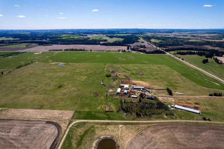This expansive 158-acre property in Red Deer County is a rare and versatile offering—two separate titles combine to create a unique blend of productive farmland, private pasture, and homestead potential, all set against the stunning backdrop of Alberta’s Rocky Mountains.