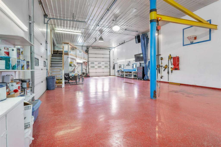 Additional income opportunities abound: a fully upgraded 1976 mobile home rents for $1,500/month plus utilities; a 2017 60’x120’ warehouse, divided into two finished 60’x60’ bays with in-floor heating, 220V power, two three-piece baths, and mezzanines, rents for $2,800/month per bay plus utilities and GST. There are also 43 acres of cropland leased on a share basis.