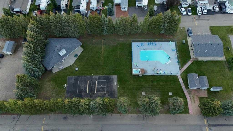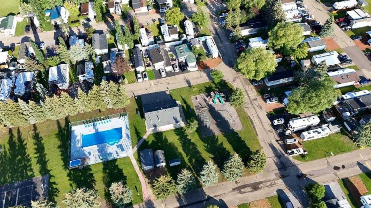 Considering a recreational property in Sylvan Lake? 61 Points West RV Resort provides your best value in prime recreational real estate. This property is a 2,946 sq/ft titled lot with a 2010 Huron Ridge Resort 12′ x 40′ park model trailer and a full-length, partially covered deck – for sun or shade. Bright living area with ceiling height transom windows for optimum natural light. Top quality wood cabinetry throughout, and thoughtful extras like a corner electric fireplace and full sized soaker tub. Fully finished & insulated 10′ x 10′ shed and attached storage shed included. Fenced on two sides with cosy firepit area. Ideally located within steps of the pool, washrooms & showers and directly across from the playground. Voted one of Canada’s ten best beaches, Sylvan Lake is Alberta’s primary tourist destination. Points West provides an economical recreational haven for you and your family – gated and private – where residents enjoy a beautiful outdoor heated pool and hot tub, fully equipped clubhouse, modern laundry and shower facilities, upgraded playground and abundant green space. Sit back and relax while professional management mows and trims your lawn. Titled lots include one RV or boat storage space. Active social club provides activities all summer long. Annual condo fee of $3,300 includes electricity, water, sewer, reserve fund contributions, mowing and trimming of lawns and common areas, operation of pool and commercial hot tub, and the new playground. And bring your pets! Open April 1st to October 31st (welcome Snowbirds!), Points West is a gated three season community on the edge of Sylvan Lake; only a km down the bike path to restaurants, shopping and the farmers’ market – all the amenities Sylvan Lake has to offer.
