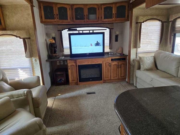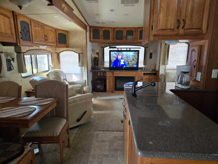 - InclusionsFridge, stove, microwave, queen bed, hide-a-bed, 2 reclining chairs, 3 TV's, electric fireplace, table & 4 chairs, BBQ, 2nd Fridge, deck, awning, shed