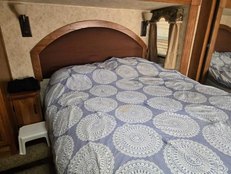 Excellent location in Phase 1 – halfway between the Main Beach and Clubhouse. This 36 foot, 2010 Coachman 5th wheel is ready for you. Comes fully furnished including leather furniture package, 3 TV’s, hide-a-bed couch, plus the kitchen has a nice center Island and table with 4 chairs. The master bedroom has a queen bed, large closet and lots of cupboard space. Oversized lot with plenty of parking, deck, unattached awning and shed.