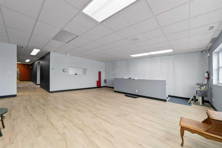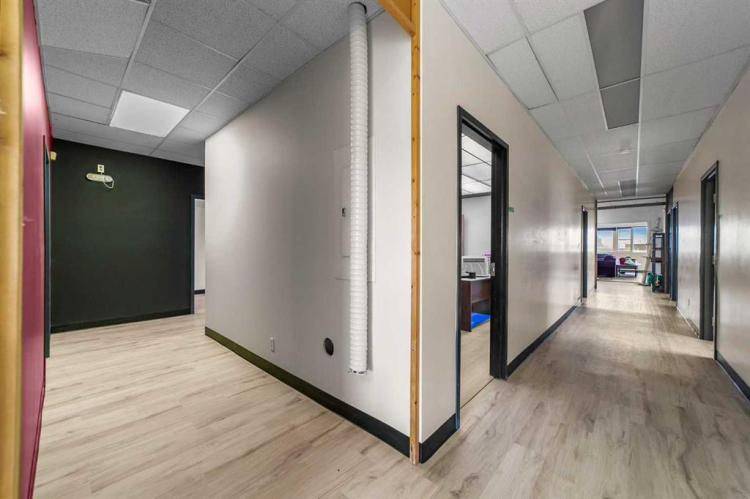 Available Immediately. Large, second floor multi-purpose space for lease. Suitable for small business, professional services, and retail. $2300 per month plus power. Gas & water included. Designed to combine commercial/workspace and residential functions within the same unit. New durable vinyl plank flooring throughout gives the space both a modern and comfortable feel. There is public access from street with employee parking and second entrance from the rear. This ideally located space within the downtown of Camrose offers many work space options. There are 2 large front spaces with expansive windows suitable for reception, show spaces, or open work areas. 7 large multi function office spaces can easily be used as meeting rooms, private offices, or service spaces. Additionally there are 2 storage rooms, a full bath with shower, kitchen, laundry room, and continuous hall to easily connect all spaces.