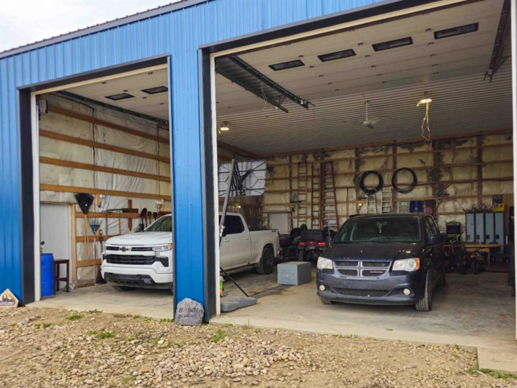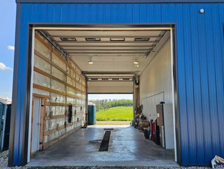 Excellent opportunity for a rural location to call home, This 1/4 is mainly Pasture bordering 2 Hi ways , 4 minutes from town or 40 minutes to Red Deer. Newly developed acreage building site with Large 40′ x 100′ Multi purpose building with 16′ and 12′ ceiling clearance portions. All new utility services installed to shop site and Gas to potential home site. The potential home site is perched on top of a hill with some tree shelter, And What A View!! Even has a couple par 3 holes in the making. Bring your animals as the gates and fencing will host most livestock. Listing agent directly related to seller.