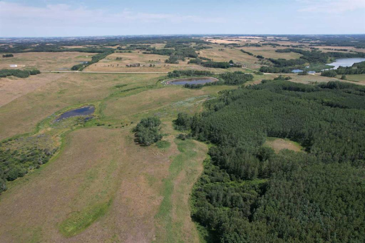 Excellent un-subdivided quarter section of native pasture land on Highway 816 close to Pine Lake. Good grass and natural water sources for livestock. Large treed and open areas with fantastic recreation, wildlife viewing, and hunting (deer & moose) opportunities. Perfect parcel of land to build your dream home and yard site right off pavement and close to the lake, golf course, gas station/convenience store, and around 20 minute drive into Red Deer.
